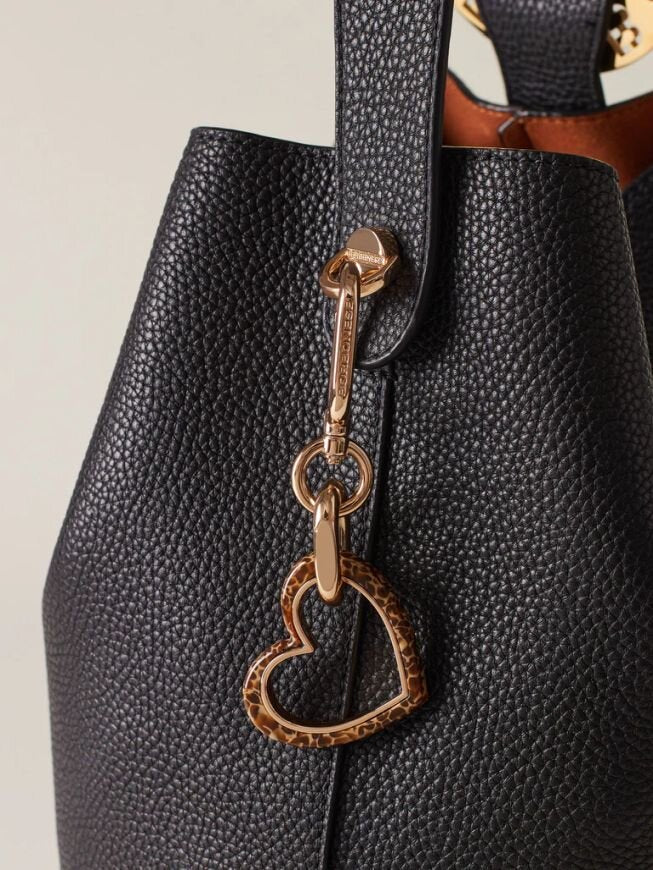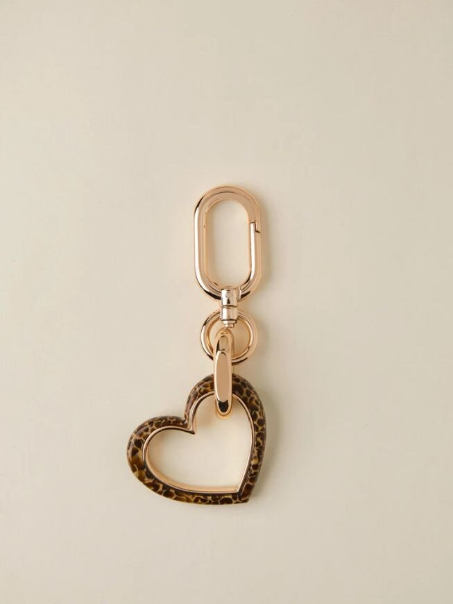 Portachiavi di metallo con ciondolo a forma di cuore in materiale acrilico con motivo OP. Può essere utilizzato come charm per impreziosire la tua borsa preferita. Galvanica in oro chiaro.
