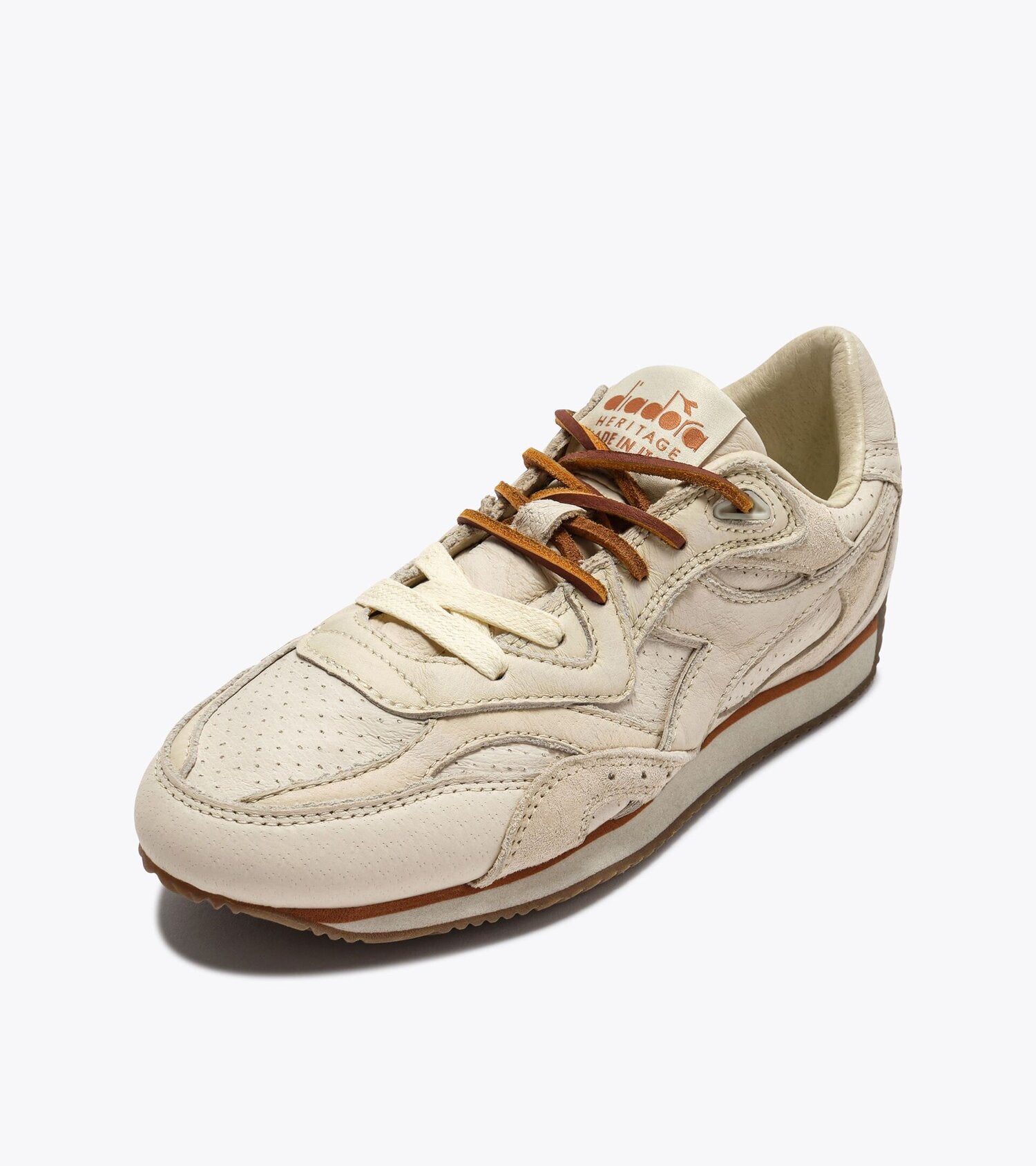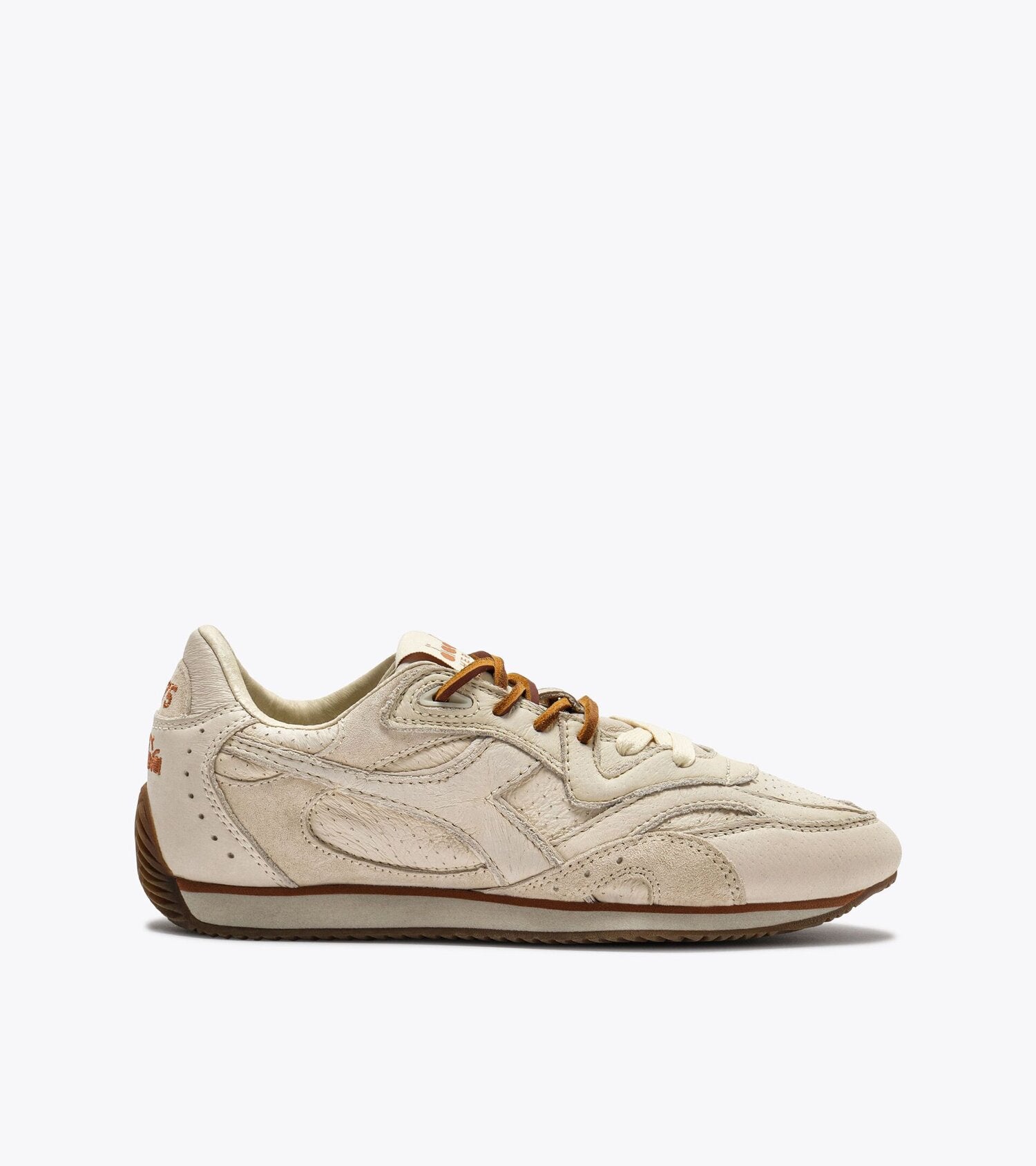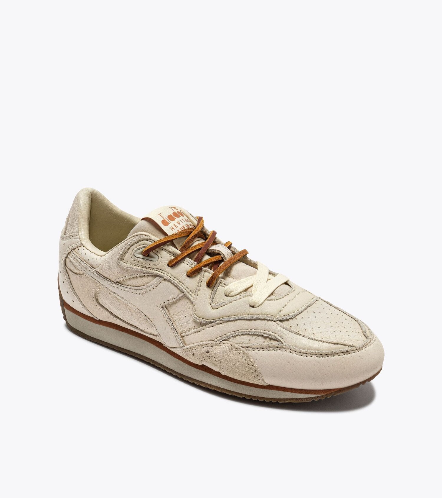 Il nuovo modello Equipe Revenge scopre nuovi orizzonti. Dune Used Italia si veste dei toni del deserto, con una tomaia in pelle pieno fiore e dettagli in pelle traforata su toni neutri. Estremamente elegante come ogni sneaker Equipe - completa anche del trattamento wax, il tacco in gomma ci riporta invece alla sua essenza sportiva, nata sulle piste di atletica.