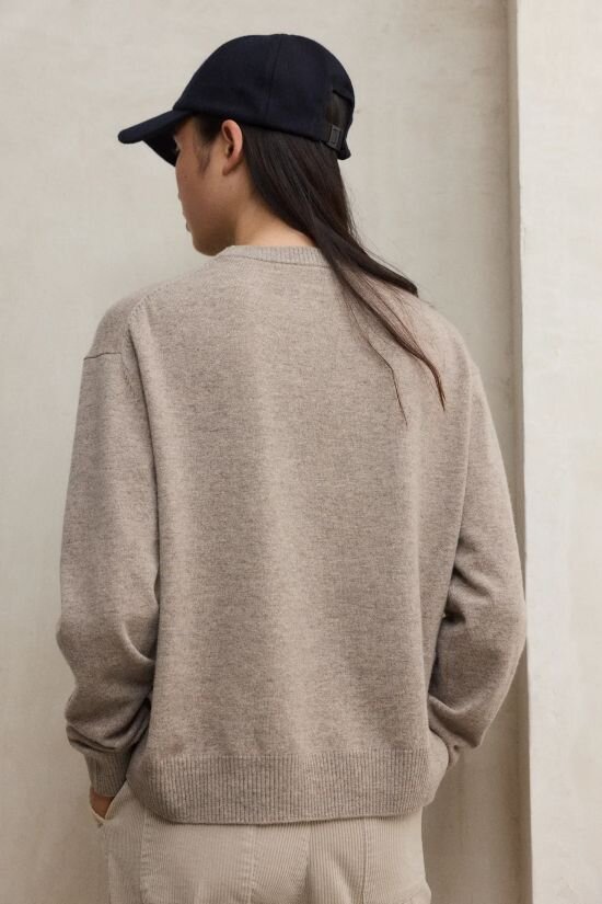 Il maglione Cosmos è realizzato al 100% in lana riciclata. L'utilizzo di lana riciclata al posto della lana vergine contribuisce a ridurre gli sprechi, a risparmiare risorse come acqua e suolo e a ridurre le emissioni e i potenziali scarichi idrici, in linea con i principi dell'economia circolare.