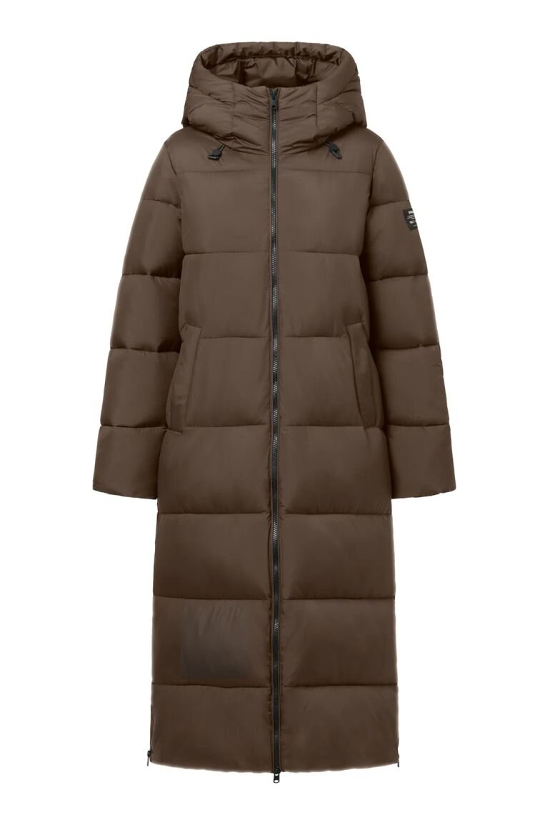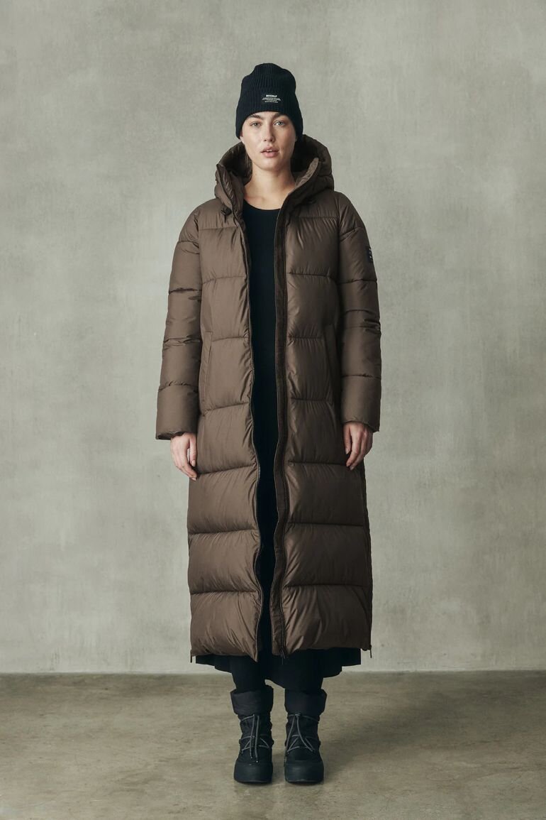 Vestibilità ampia, polsini elastici, chiusura frontale con cerniera bidirezionale, tasche laterali con cerniera, aperture laterali con cerniera, cappuccio regolabile con fermi, logo ECOALF sulla manica, senza PFC e vegan.